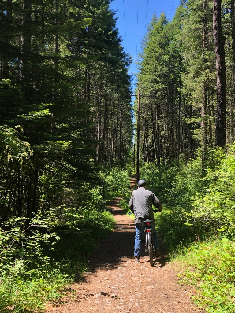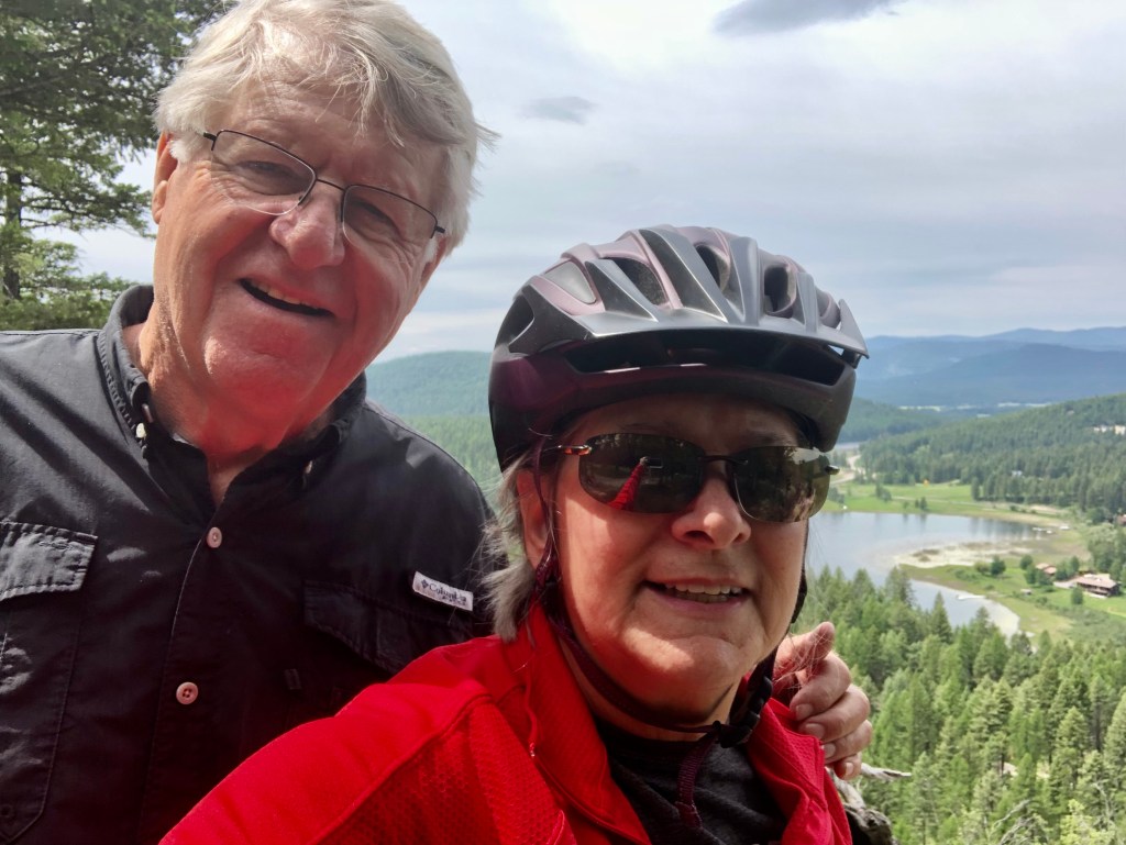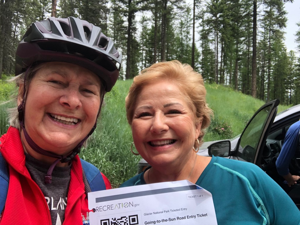 Lion Mountain was one grueling ride up (for me) and a heart-pounding ride all the way back down into town but the views were worth the ride. In the parking lot at Lion Mountain we met Sherry from the East Coast and chatted about Whitefish, e-bikes and my disappointment in not being able to secure a ticket into GNP. I was shocked when she pulled out a pass that had to be used the next day and with a tear in my eye, thanked her for her kind gesture. You see, she was also online every morning and eventually got a ticket, but her local friends also had one to surprise her. Being at the right place at the right time; chatting up someone with a smiling face; call it serendipity but what it did was change up our visit in a magical way. Stay tuned!