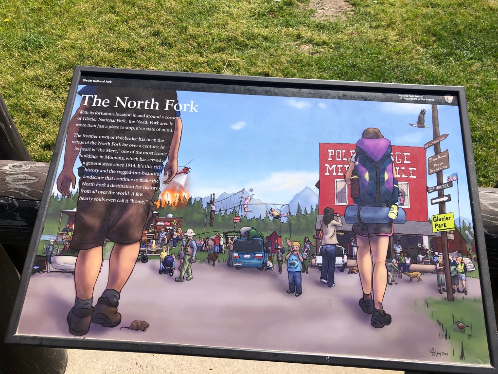 WHITEFISH, MONTANA is a sweet mountain ski/hike/bike/kayak town located just south of the Canadian border and a short 30-minute drive east to Glacier National Park. Some of our national treasures, like GNP, are on a lottery system to enter these days. If you have a secured campsite (resvs made months ahead!) or booked a boat tour on Lake McDonald, BOOM! you are in the park. If not, you’re online at 8:00 a.m. every day to secure one of 125 tickets available to enter GNP. I, unfortunately, was not one of the lucky ones. So our mornings would begin at the beautiful, fenced 5-acre dawg park or heading to Polebridge, MT to pick up a warm, huckleberry turnover while our afternoons were spent in town or biking Lion Mountain from our campsite.