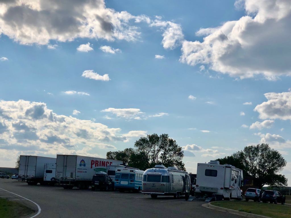 Our evenings are not all campfires and conveniences. We’ve been known to occupy a WalMart parking lot; we’ve pulled over on the side of a gravel road when dispersed camping was full; and even enjoyed a rest stop! This one, the Painted Canyon Overlook on North Dakota’s I-94, allows overnighters and oh my, what a view! You never know who your neighbor will be, but we have always felt at home.