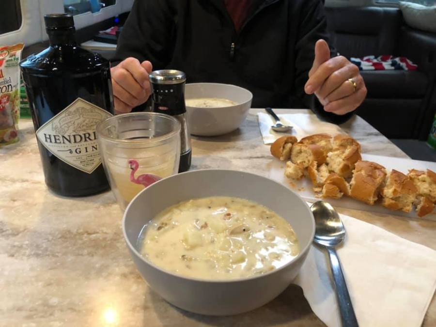 Buckle up buttercup! This version of chowder had no shortage of clams, cream or butter. Happy Friday! (This batch was made a couple of nights ago. I found it tasted even better this evening but it could be the chilly, damp day, or the gin!) (June 11, 2021)