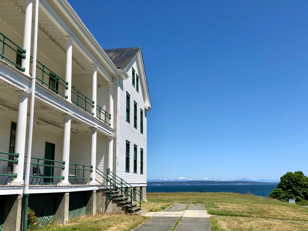 THE TRIANGLE OF FIRE is the name given to three forts at the mouth of Puget Sound. Strategically placed, these forts, Worden, Flagler, and Casey, were opened at the turn of the 20th century. We were originally slated to set up camp at Fort Flagler, however, based on outstanding recommendations on the seaport village of Port Townsend across the Sound, we altered our reservations to that area, which placed us less than two miles from Fort Worden. On my bike, I took off from our campsite at Point Hudson Marina & RV Park and headed over the hill to the Point Wilson Lighthouse; then up to Fort Worden where I grabbed a bite to eat before riding around the grounds. After WWII, these three forts were deactivated and in the 1950s/60s/70s, the State of Washington purchased all three for various uses, including campgrounds…lucky us! If you don’t have an Airstream, Fort Worden has rental properties where you can rent Bliss Vista Cottage (pictured) or Alexanders Castle. Look again, if this scenic location and white barracks look even faintly familiar you’re aging yourself. In 1981/82, ‘Officer and a Gentleman’ was filmed here and around Port Townsend. Later that night, I made popcorn and watched this Richard Gere/Debra Winger film for the first time in a long time.