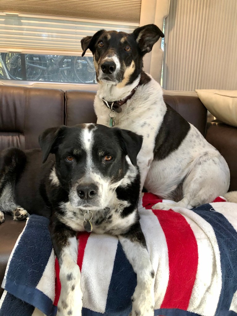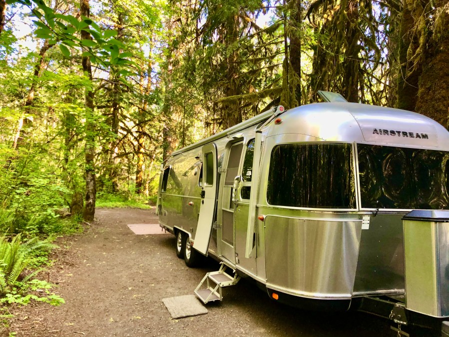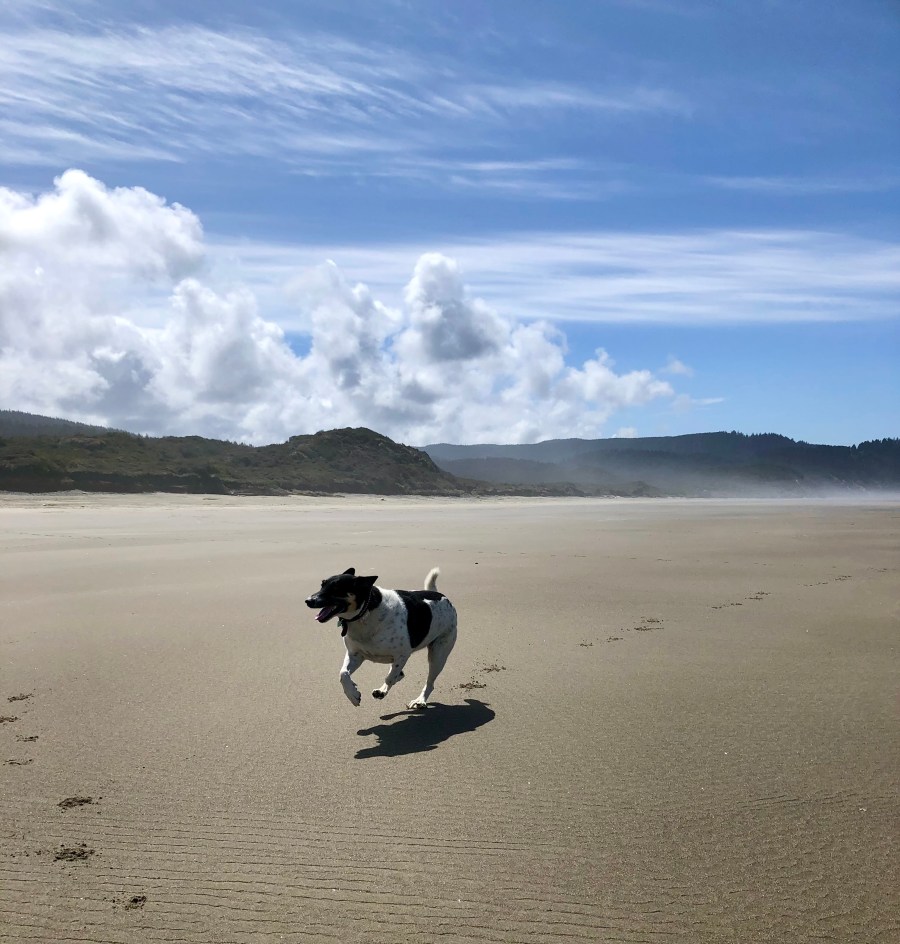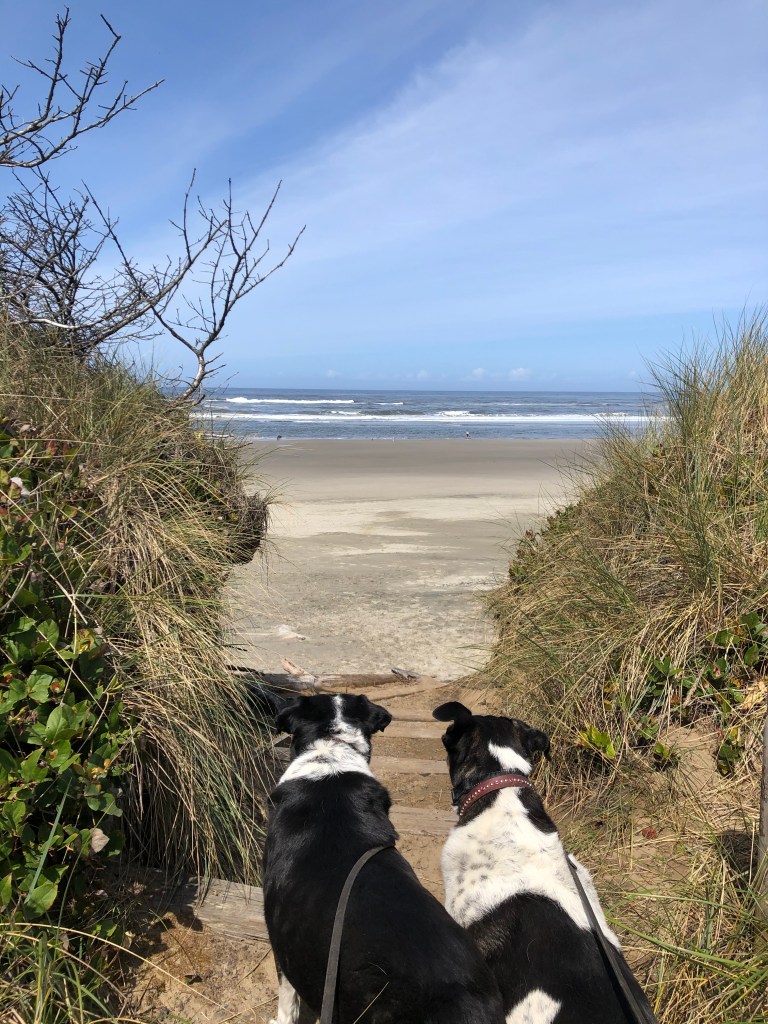 WITH BEND, OREGON IN THE REAR VIEW MIRROR we headed west and landed in Hobbit Land. I would swear that it felt as if Tolkien had just departed this lush, riparian forest with mossy trees, ferns and our very own river just 40 steps from the back of our Airstream. The McKenzie River was peaceful to listen to while we fell asleep with the windows wide open. Next morning we were rolling to Oregon’s coast and the big, beautiful Pacific Ocean. With only two other people on the entire beach, Boone and Piper ran wild. This, they report, is the best dawg park….ever! (May 21, 2021)