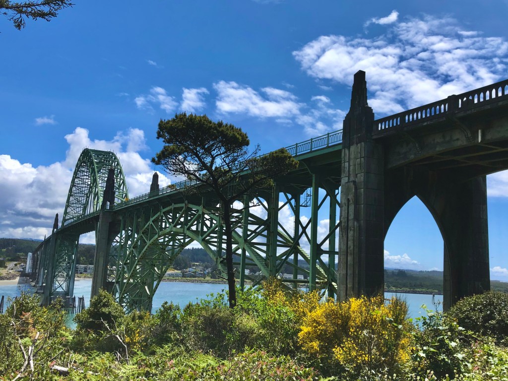 WE SETTLED INTO OREGON’S South Beach State Park, one of the largest state park’s we’ve visited with about 325 sites in several loops and well spaced. After a quick tour of the park, I hopped into the truck and headed north across the Yaquina Bay Bridge in search of my coastal splurge….a mighty big bowl of clam chowder. Construction began on the Yaquina Bay Bridge, made of steel & concrete, in 1934 and opened in 1936. Built during the art deco era, I held my breath during the crossing and made it safely to the other side. Jim, of course, reminded me that this was when steel was steel! That didn’t calm my anxiousness when we crossed with the Airstream (10,000 additional pounds!) a couple of days later. At Newport, Oregon’s historic waterfront I dropped into Mo’s Original Clam Chowder and picked up two sour dough rounds and a large container of chowder for dinner. It just wasn’t meant to be. Unfortunately, I can’t recommend Original Mo’s as the clams were almost non-existent, 0-1 for chowder on the Oregon coast. I found the Newport historic waterfront a cross between a collection of working fishing boats, touristy candy and ice cream shops and a Ripley’s Believe-it-or-Not museum. After soaking up a little more Vitamin D on the waterfront, it was back across the bridge! (May 25, 2021)