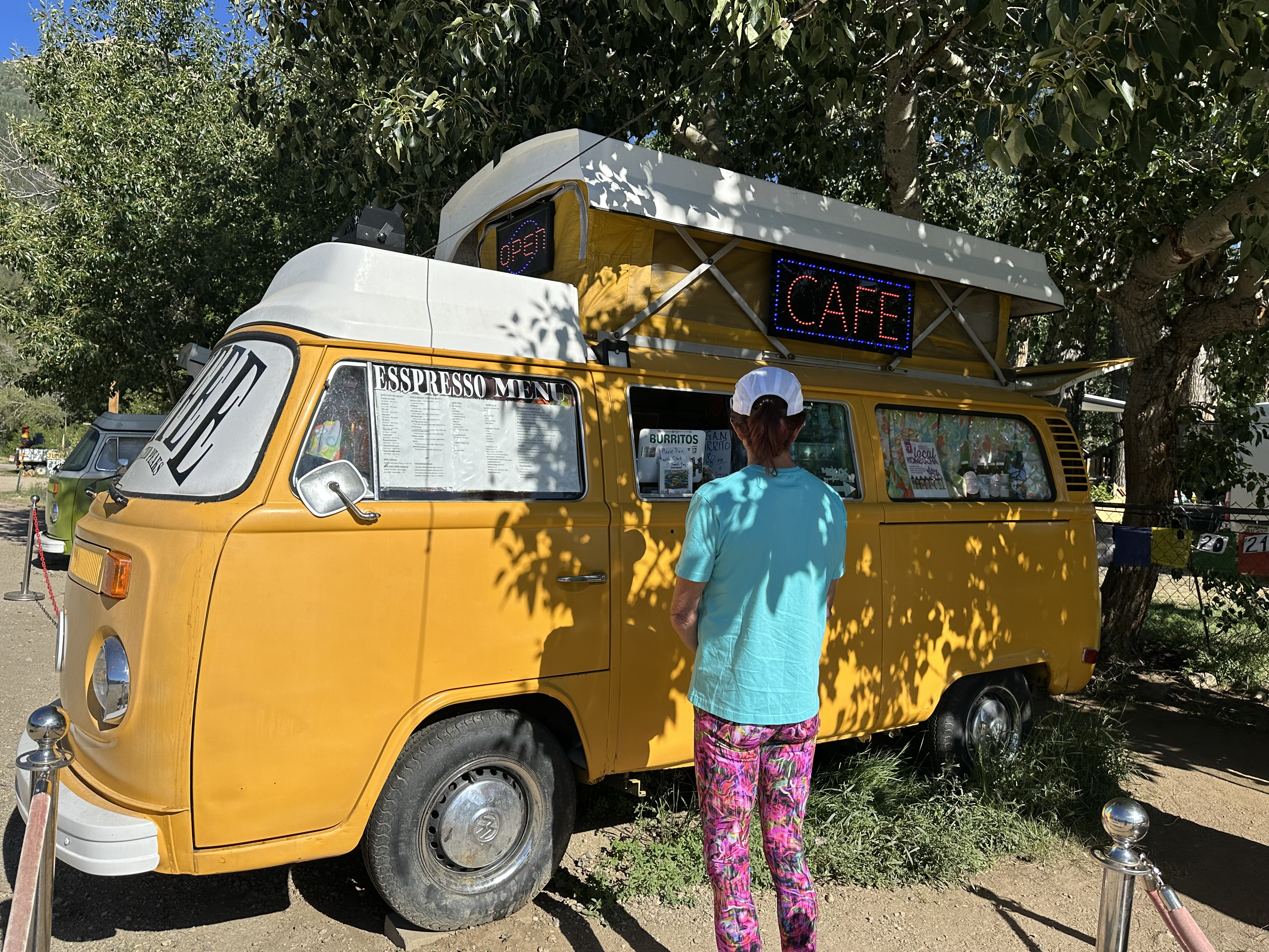 Next day, it was a stop at Coffee, a converted VW bus near the Twin Lakes Inn where I picked up a latte and hit the road. It’s always exhilarating to take a spin over Independence Pass to Aspen. This 30-mile drive is stunningly scenic and thrilling to drive, yes, even in our Sexy Beast, the F250. With its 10 mph hairpin curves, 6% grades, steep drop-offs and picturesque pull overs to stop and soak in the beauty, it’s an amazing drive filled with history. This trip, however, I was competing with a 60-70 car crazy-fast Lamborghini Countach Road Rally which caused me to keep my eyes peeled for more than the occasional critter crossing the road. It was beautiful and exciting to see the cars, but whoosh!! they are fast! I shared my adventure with a shopkeeper who said, “It’s just another day in Aspen!”