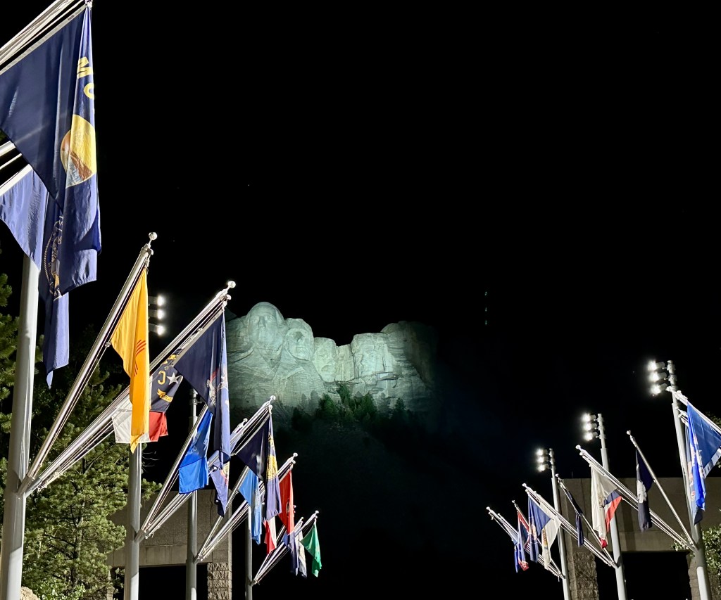 This year, a first for us was to view the lighting of the monument at night, and did I mention all this and the annual Sturgis Bike Rally?