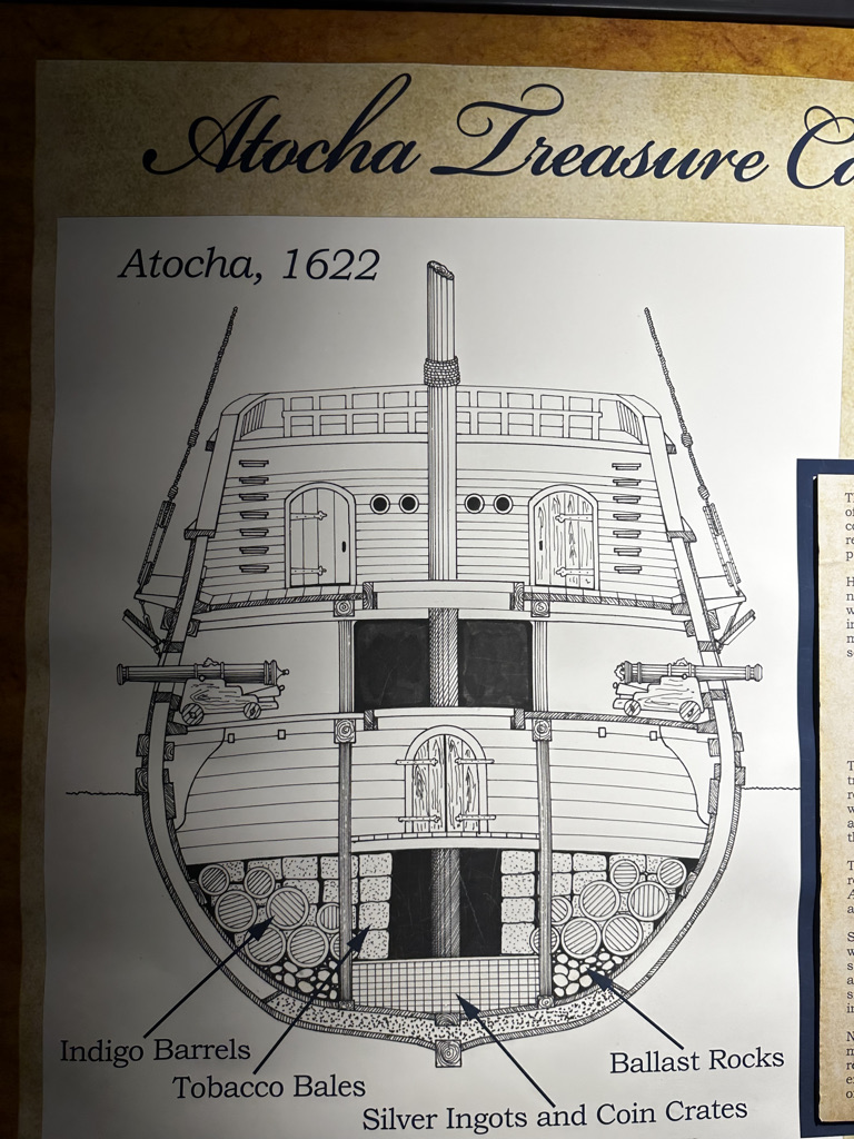 I had high hopes for the Mel Fisher Maritime Museum after several recommendations. Fisher’s lifelong passion was diving when he opened the first dive shop in Southern California in 1950; and the hunt for the Spanish treasure ship, the Nuestra Senora de Atocha, which sunk off the Florida coast in 1622. In 1985 following a 16 year search, Fisher and his team discovered the vessel off the Florida Keys and claimed almost a half billion dollars in silver bullion, coins and gold. Following legal disputes with the state of Florida and the federal government, the Supreme Court awarded the findings to Fisher and his investors. While the Fisher story is amazing, and not without personal sacrifice and loss, I felt the exhibits were not engaging and the museum lacked in presentation.