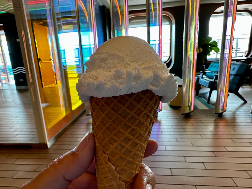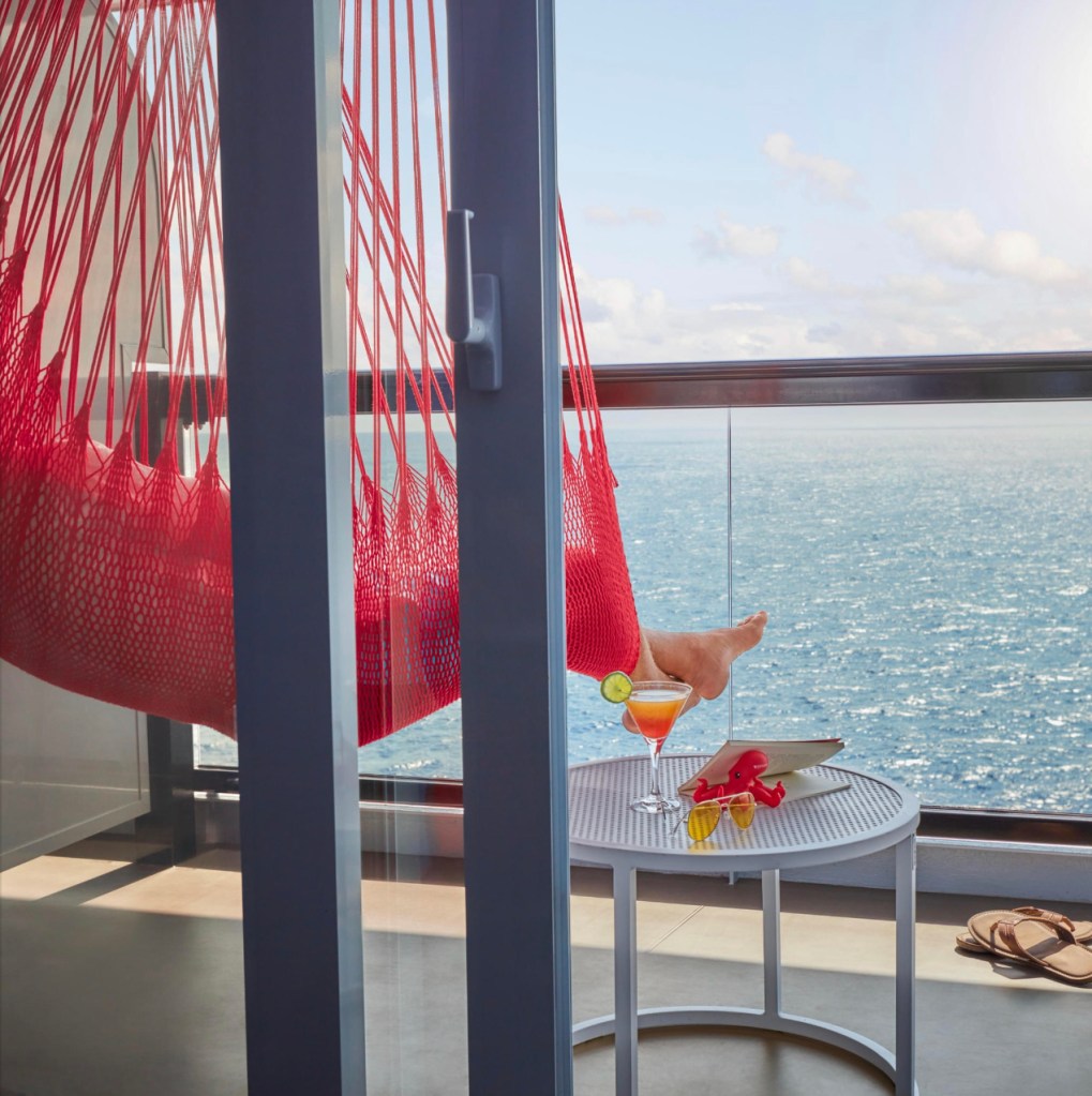 The next day was spent sailing which is always my favorite as it gives you time to explore the ship, take in a show, shop some (slightly!) extravagant stores and even get a little ‘ink’ at The Squid, if you are so inclined. Remember Virgin Records? Yes, you can still purchase albums. One of my favorite indulgences was the ice cream store on ship where I discovered orange ricotta ice cream. Along with the beautiful turquoise Caribbean waters, this is one thing that clearly remains in my memory! While exploring the ship I was really taken with the variety of intimate spaces available for guests, or sailors, as we are called on board; spaces to relax, alone; gather with friends; play board games, or to enjoy a cocktail. And one space that I utilized most often, the beautiful, bright red hammock hanging on our terrace.