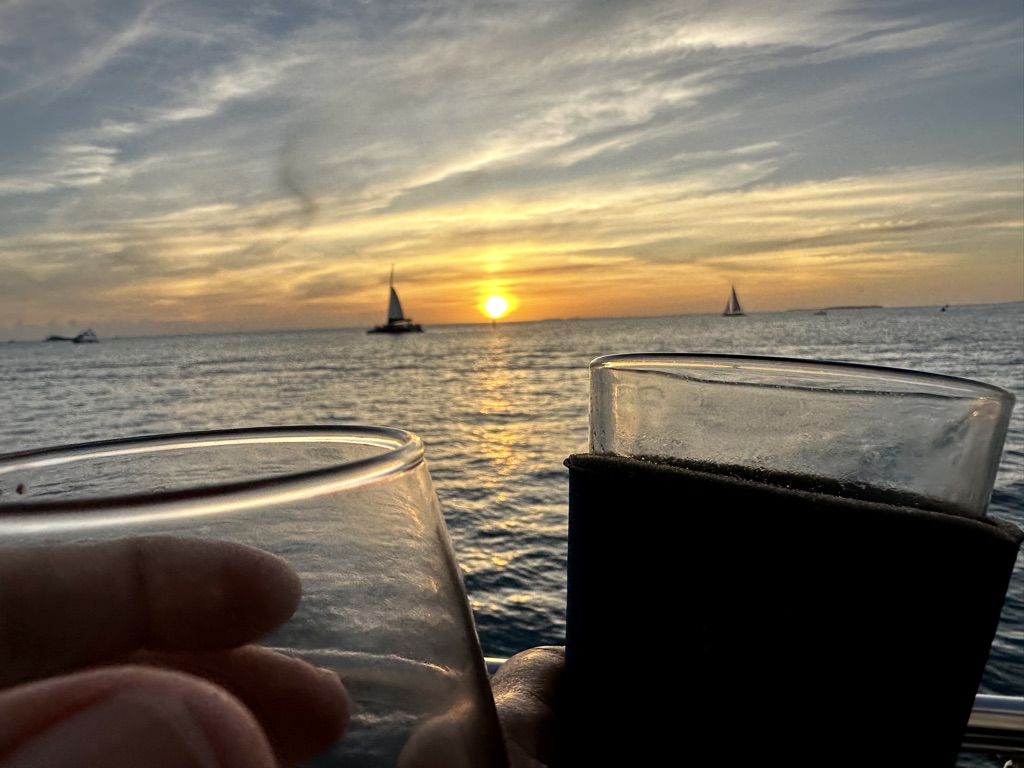 WE RANG IN THE NEW YEAR…fast asleep, surprise! On New Year’s Day we boarded the beautiful Argo Navis, a 75-foot catamaran, to enjoy the first sunset of 2023 over Key West. With only 27 people aboard, Captain Tadd and his skilled crew kept the nibbles and cocktails coming during our stunningly beautiful, and at times blustery, sail.