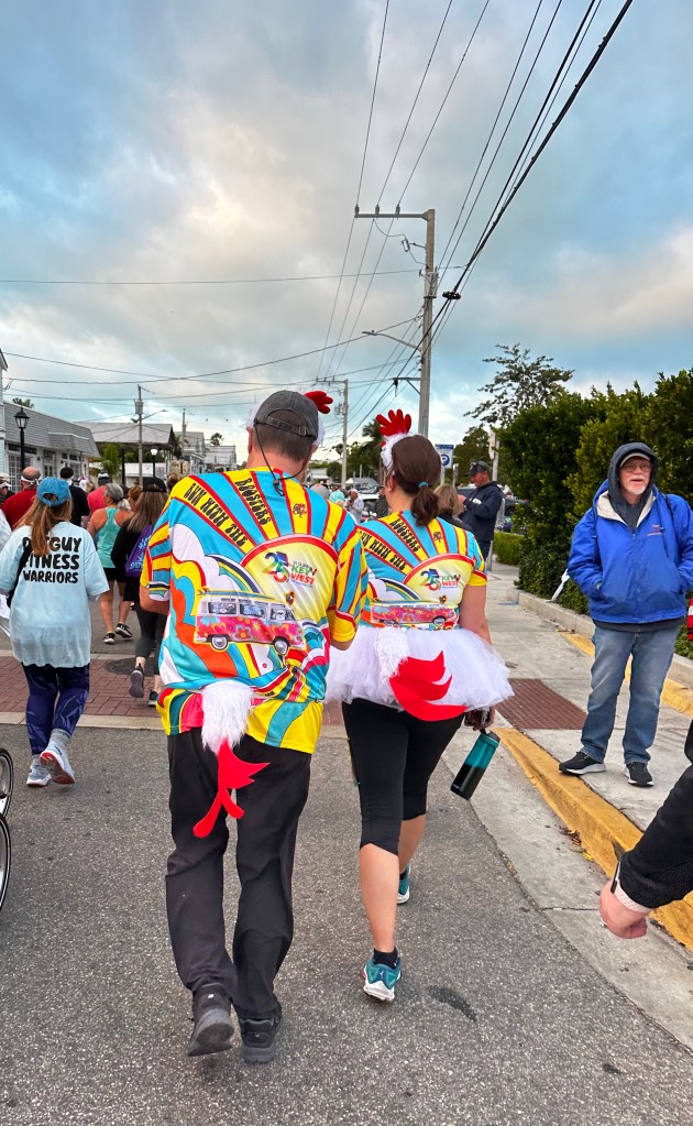 THE 25TH ANNIVERSARY OF THIS COLORFUL KEY WEST RACE began with a chilly pre-dusk, bike ride three miles to Key West’s historic seaport. What better way to warm up, right! Along the way the free-range roosters, one of the quirky things Key West is known for, were crowing and put a smile on my face along the (very) brisk ride into town. With a cold spell moving through Florida, and the temps sitting in the low-50s when we left the Airstream (did I mention….in the dark!), I was thankful for the pair of gloves I packed away as we jumped on our bikes. We arrived shortly before the 1/2 marathon began and what a thrill it was to see these super fast runners fly from the gate!
