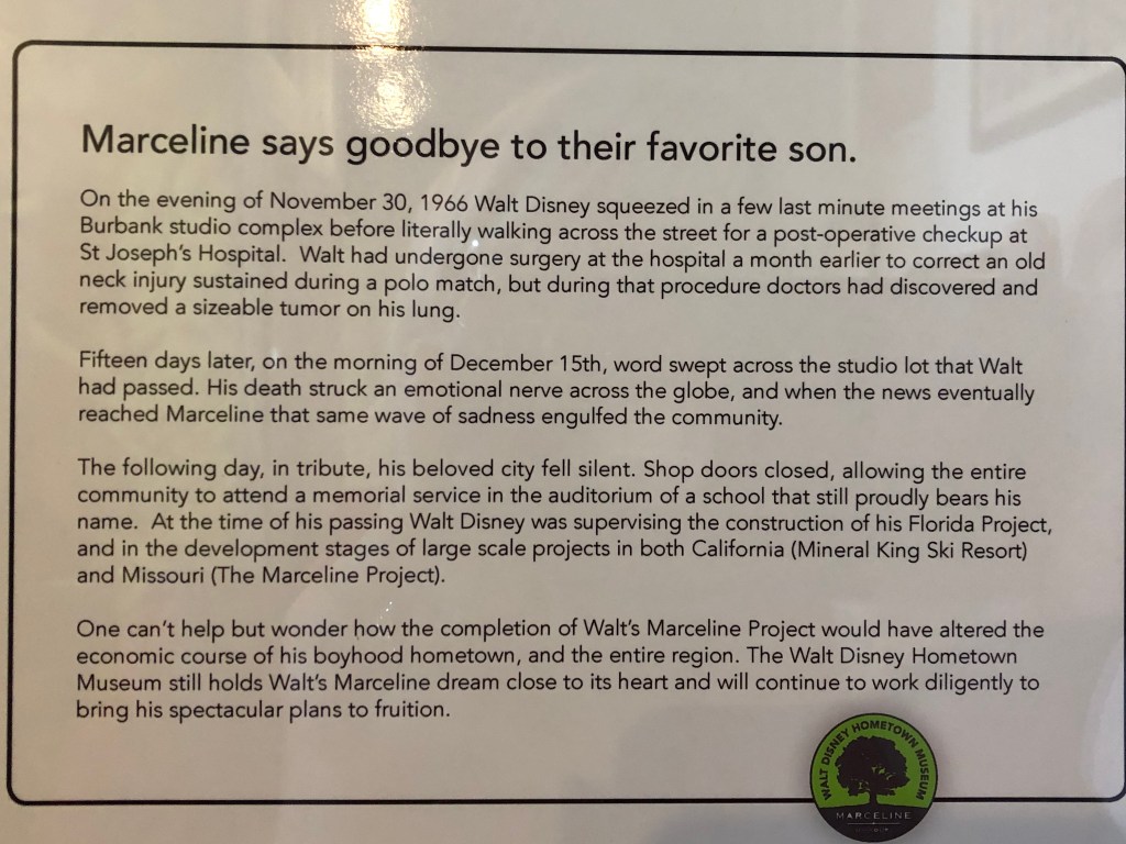 On our journey along Missouri’s Highway 36, designated as “The Way of American Genius”, we stumbled upon the small town of Hamilton, home to Jenny Doan, the master quilter/YouTube vlogger, and her Missouri Star Quilt Company. Hamilton is also home to James Cash Penney, born in 1875. Today, a very small museum bears his name, J. C. Penney. Further east we pulled into the town of Marceline, population 2,000, whose claim is the boyhood home of Walt Disney.